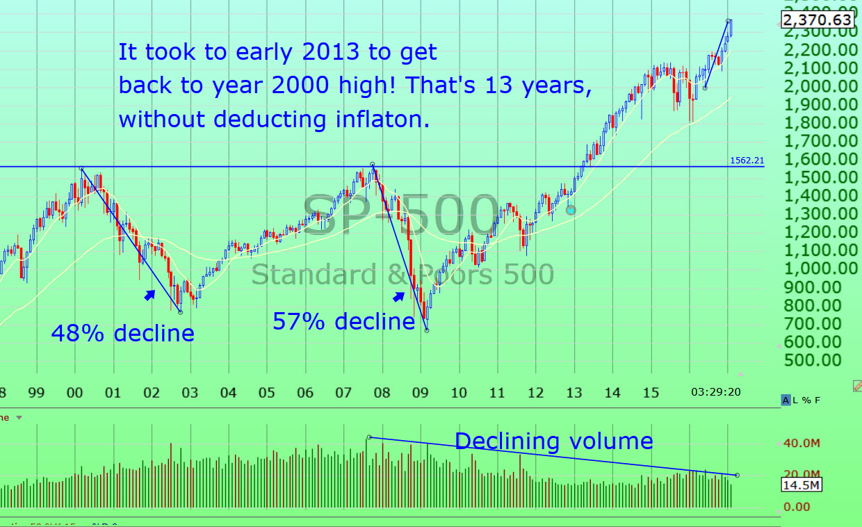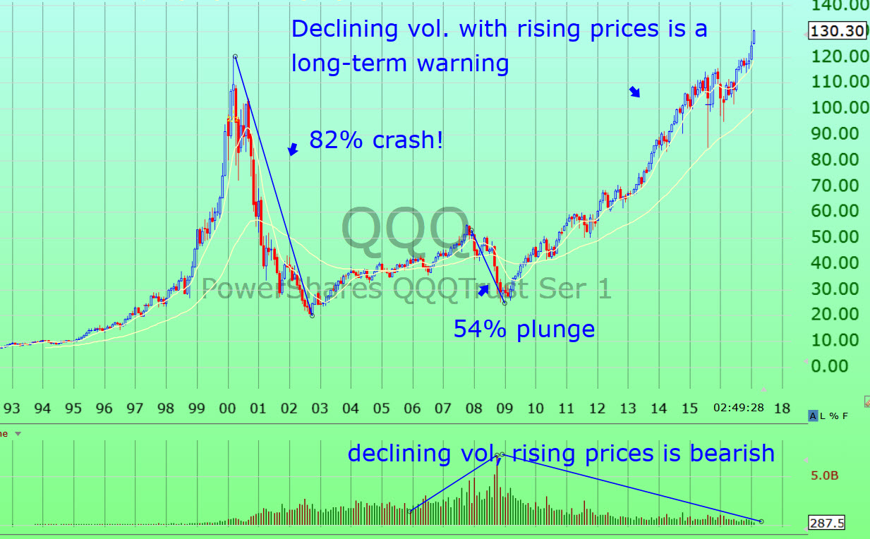 Remember the disasters of the recent past! The NASDAQ 100 index crashed 82% from the year 2000 to 2002, and plunged 54% from 2007 to 2009.